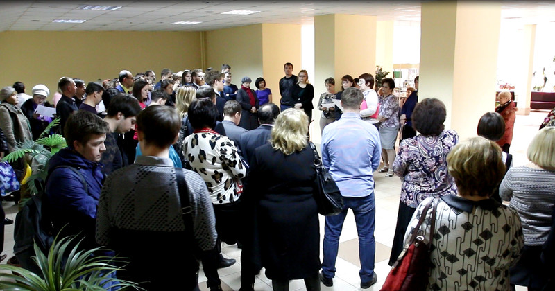 В коллективе БрГУ явный раскол. Одна его часть в аудитории спокойно обсуждает срыв выборов ректора. Оппозиция же гудит прямо в фойе.