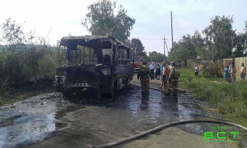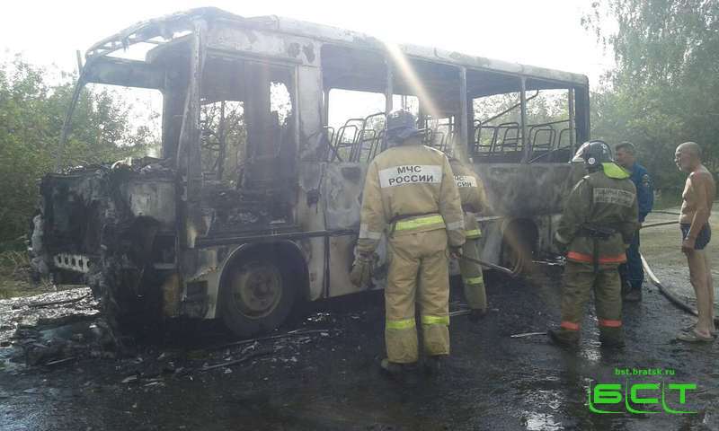 В Братске загорелся дачный автобус с пассажирами. Всё произошло в пятницу днём на Коврижках.