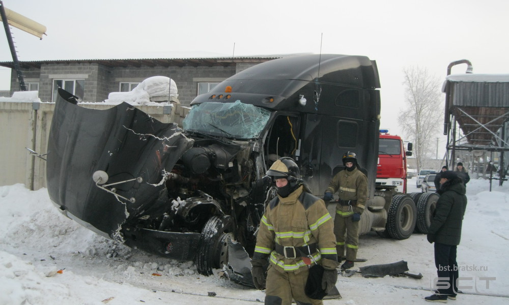 Грузовик и локомотив не поделили дорогу на промплощадке КБЖБ накануне днём. По данным ГИБДД, автомобиль выехал на железнодорожные пути и не уступил дорогу поезду. От удара машину отбросило на бетонный забор, после чего большегруз загорелся. Водителю удалось обесточить авто и выбраться из кабины. Чудом никто не пострадал.
