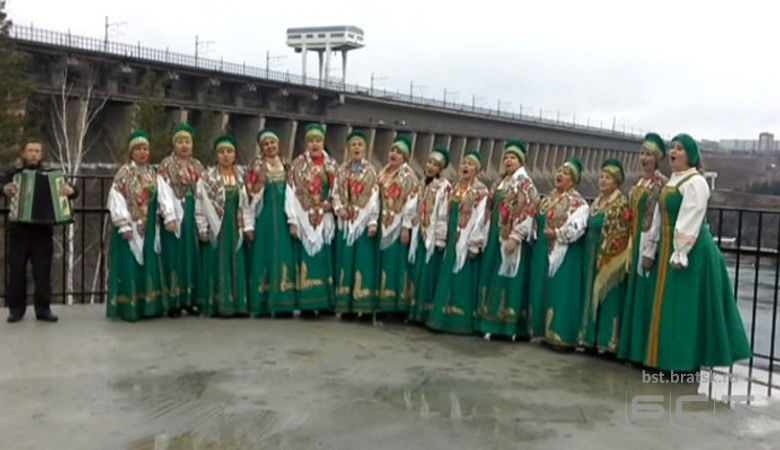 Гармонь и гармония. Народный ансамбль «Злато колечко» исполнил песню «По Ангаре» на смотровой площадке Братской ГЭС.