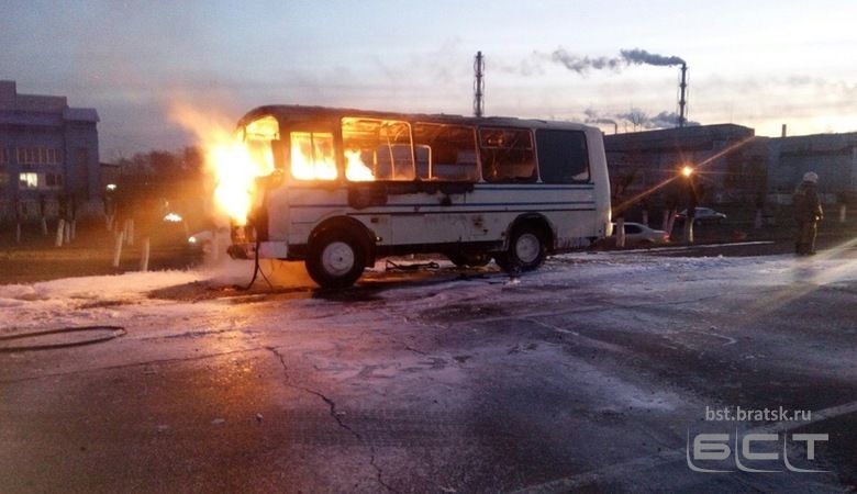 В Братске горел пассажирский автобус. «Пазик» полыхал в районе БрАЗа сегодня в половине восьмого утра.