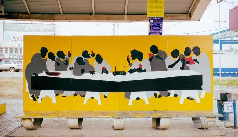 На злобу дня. В Братске появился необычный арт-объект. На одной из остановок улицы Рябикова взору горожан предстала авторская трактовка картины «Тайная вечеря». Полотном художника стали 4 ДВП-пластины.