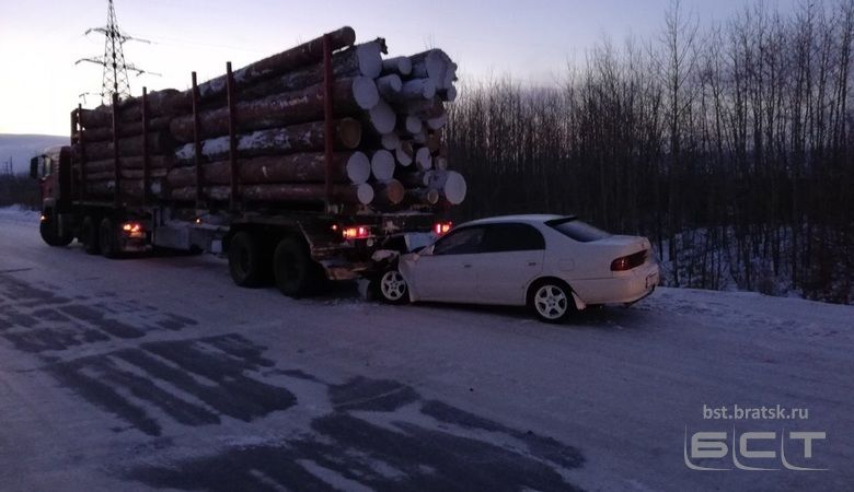 Иномарка на полном ходу врезалась в прицеп лесовоза. ДТП произошло накануне утром на ул. Коммунальной. В момент аварии грузовик стоял на обочине.