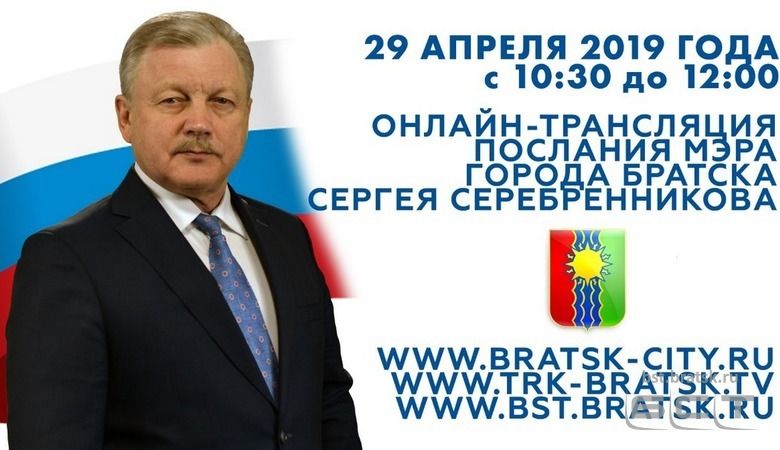 29 апреля мэр Братска Сергей Серебренников выступит на сцене ТКЦ "Братск-АРТ" с ежегодным посланием. Прямая трансляция послания организована рядом городских и региональных СМИ.