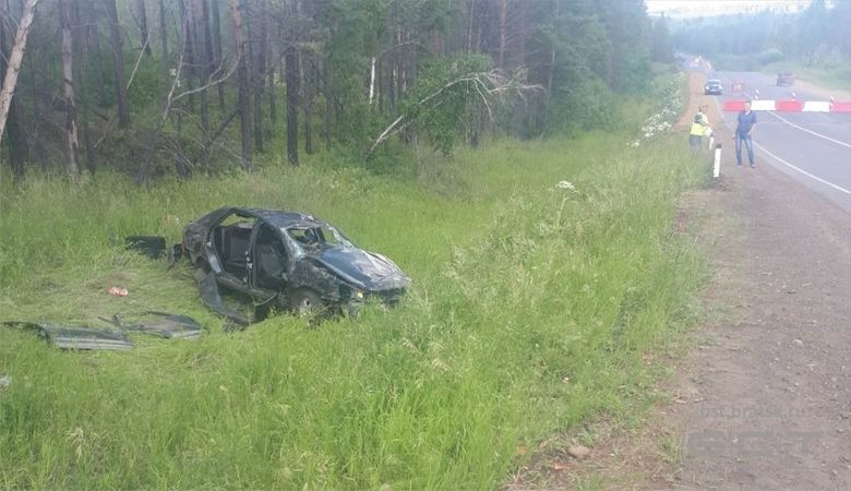 Автомобиль вылетел с проезжей части и перевернулся. Мужчина и его пассажирка госпитализированы с травмами различной степени тяжести.