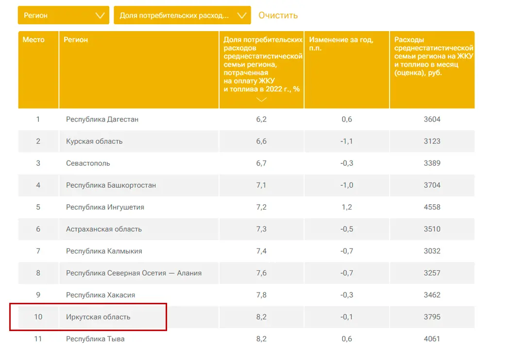 Иркутская область находится на 10-м месте среди всех регионов России по доле расходов на жилищно-коммунальные услуги. Об этом сообщает информагентство РИА «Новости».