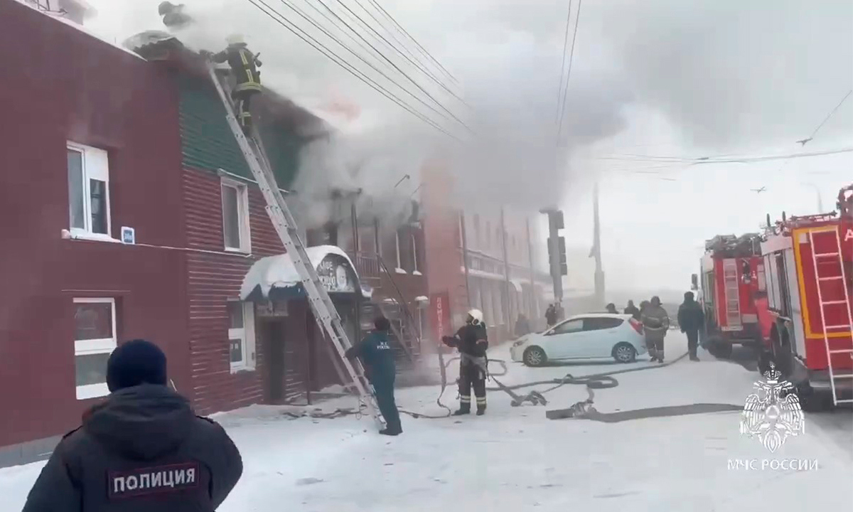 Деревянное двухэтажное здание, в котором расположены два кафе и магазин, горит в центре Иркутска, по соседству с Центральным рынком.