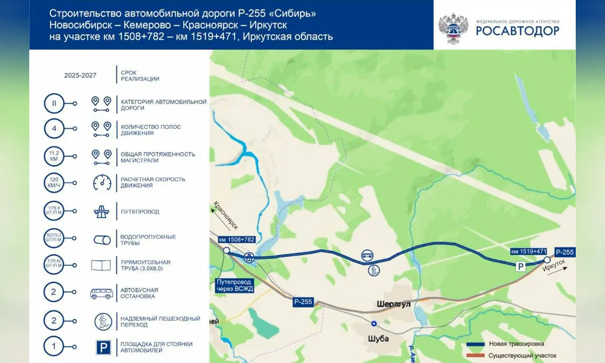 Пересечение железнодорожных путей с федеральной автомобильной трассой в районе села Шерагул разведут на разные уровни. Путь от Братска до Иркутска станет заметно быстрее и комфортнее.