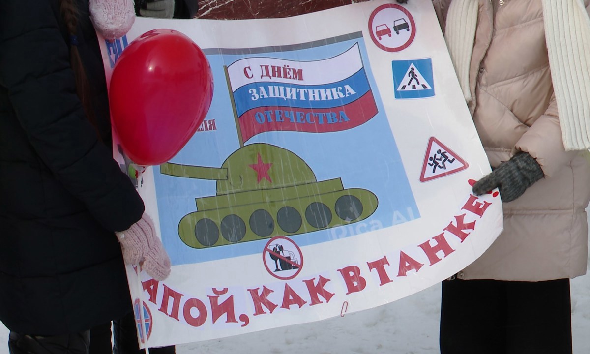 Юлия ЧУДАЕВА, инспектор по пропаганде безопасного дорожного движения отдела Госавтоинспекции МУ МВД России «Братское»: «В преддверии праздника, посвящённого Дню защитника Отечества. Госавтоинспекция совместно с юными инспекторами движения 16-й школы сегодня проводим акцию „Настоящие мужчины соблюдают ПДД“».
