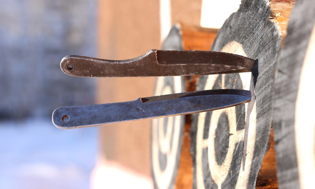 Евгений ГОРБАЧЁВ, занимается метанием ножей: «Ножи они совершенно безопасны, потому как они не являются холодным оружием. Они не острые, без режущей кромки, совершенно не приносят вреда для человека, потому что человек метает на безопасном расстоянии для него».