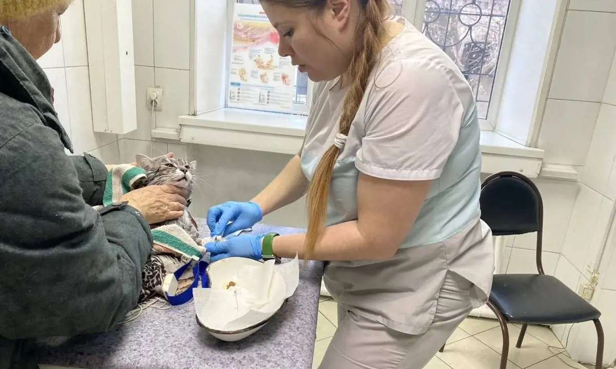 Пенсионерка принесла в ветеринарную клинику Усольской станции по борьбе с болезнями животных мокрого кота в тяжёлом состоянии.