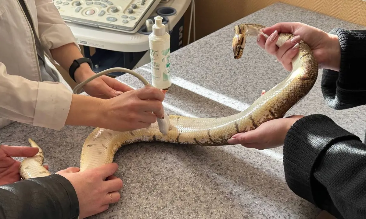 Заведующая ветклиникой Марина Пяткина рассказала, что они впервые работали с таким экзотическим пациентом. Специалисты провели клинический осмотр рептилии, а также ультразвуковое исследование. И оказалось, что в скором времени Феня станет мамой.