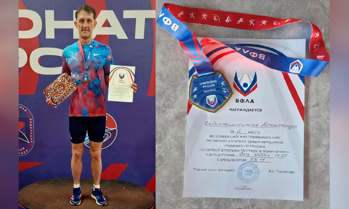 Первое место на чемпионате России по лёгкой атлетике «Мастерс» в помещении занял братчанин Александр Шапошников. Он пришёл первым на дистанции 400 метров в возрастной категории 55+.